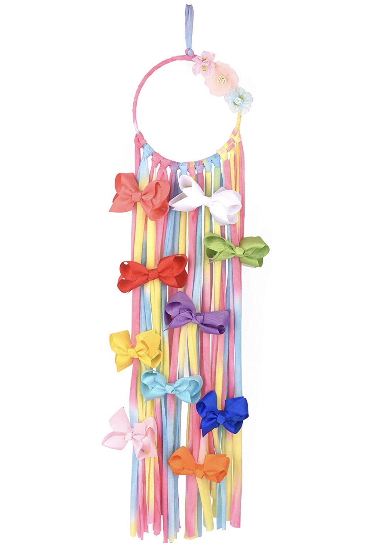 Tired of looking at all those bows and clips laying around, well look no further! i found a solution for you. Not only is this a great decoration piece for their room it will also keep all their hair stuff on display so they can choose which one they want every morning and will never fight with you again – YEAH RIGHT!!! Impossible for children to ever do that – insert huge eye roll here. None the less its super cute, and best of all super affordable at $13 !!! Comes with TEN bows included – another win for this product.